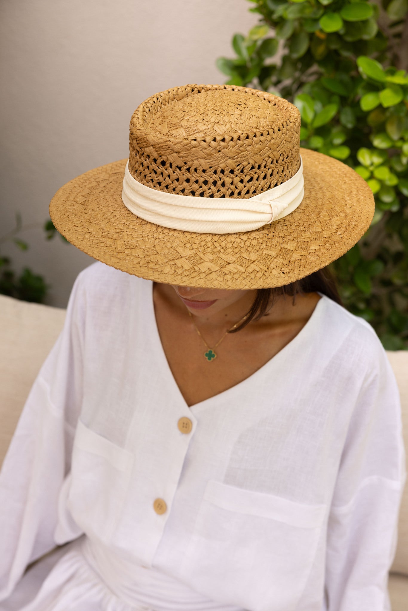Inspired by the quiet of early mornings, the Aube Hat is a soft-brimmed essential made from natural straw. Light, breathable, and timeless—your gentle shield from the sun. All our hats have straps in there making it easy to adjust to a smaller size