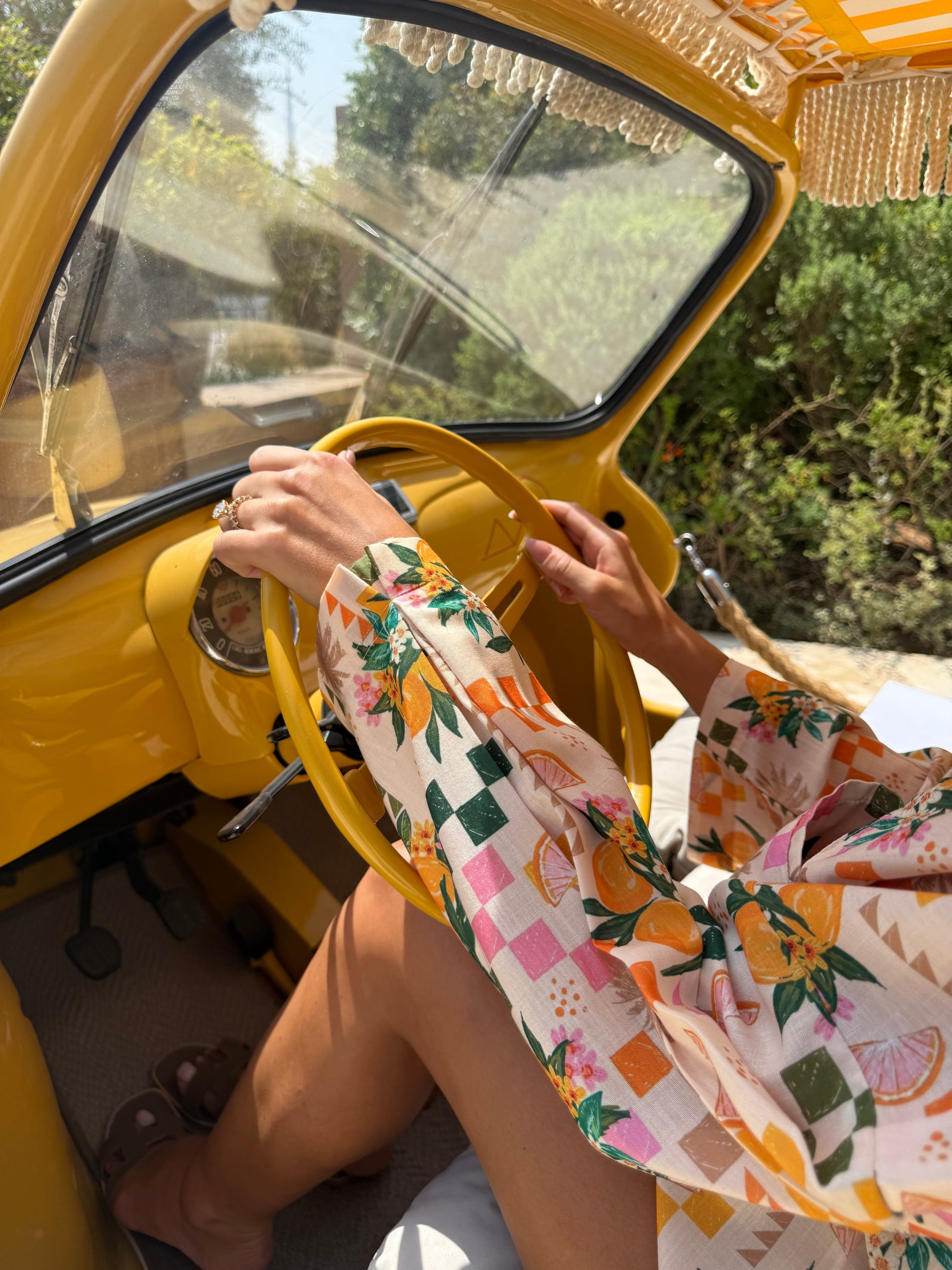 A lightweight linen shirt featuring a vibrant citrus and mosaic print. Designed with a relaxed fit and soft tailoring, it captures the brightness of summer mornings and effortless Belle Chose elegance.
