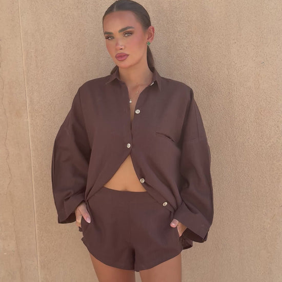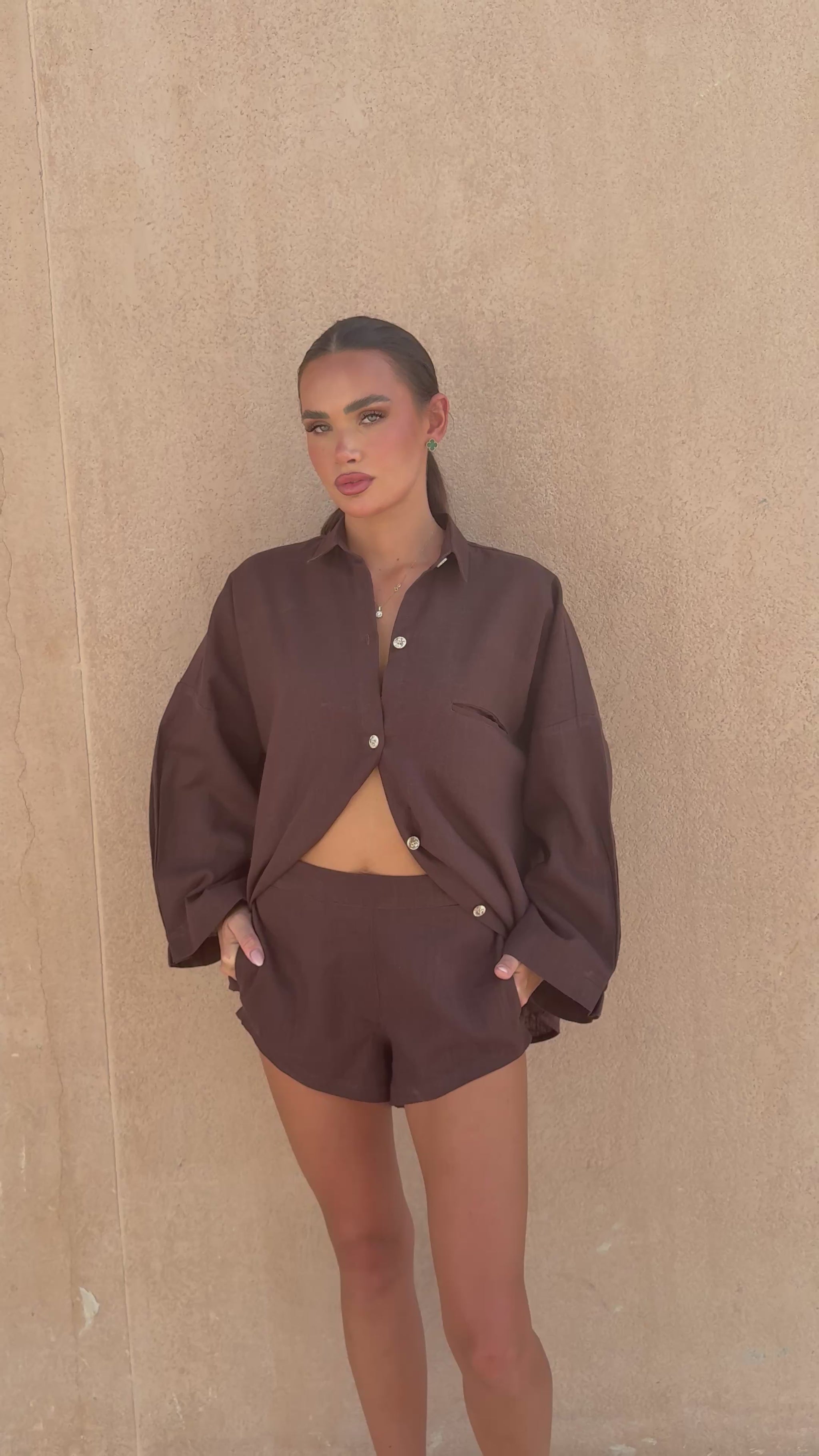 Designed for both comfort and style, the Sable Foncé Shorts are crafted from 100% linen in a rich, dark hue. Featuring a relaxed mid-rise fit and practical side pockets, they are a perfect blend of ease and elegance. The airy linen fabric ensures breathability, making them an essential piece for warm days and timeless dressing. Details: 100% pure linen, soft and breathable Mid-rise with elasticated waistband Side pockets for functionality Relaxed fit for effortless wear Ethically produced in small batches Style Notes: Wear as a set with the Sable Foncé Shirt, or pair with light tones for an elevated contrast. Ideal for coastal evenings, city strolls, or relaxed gatherings.