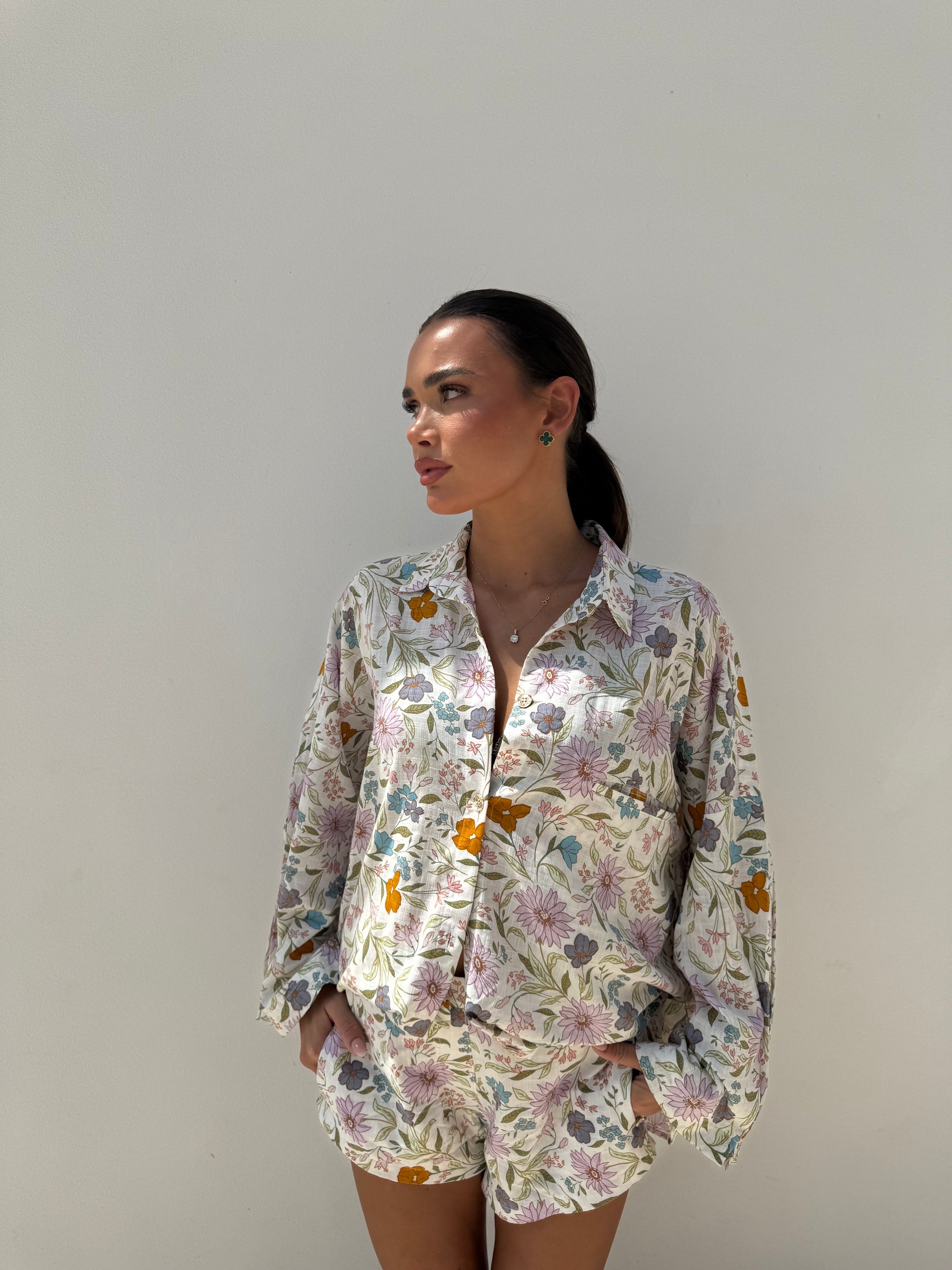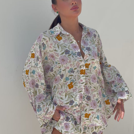 The Jardin Fleuris Shorts blends comfort and elegance in a breathable cotton–linen fabric. Designed for slow days and timeless style, this shorts captures the lightness of summer with soft floral-inspired tones. The relaxed shirt drapes effortlessly, while the mid-rise shorts offer comfort and ease with every step. Worn together, they create a coordinated look of understated sophistication—or mix and match with other staples for versatile styling. Details: Cotton–linen blend: lightweight, soft, and breathable Relaxed fit shirt with button-front closure Mid-rise shorts with elasticated waistband and side pockets Ethically crafted in small batches Style Notes: An easy choice for brunch, travel, or days by the coast. Pair with sandals for effortless ease, or elevate with espadrilles for a refined touch.