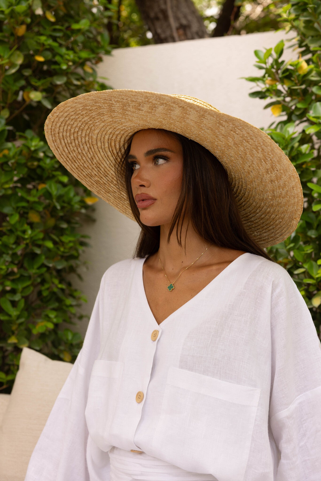 With a sculpted, oversized brim and breathable natural grass, the Dune Brim offers generous shade and understated elegance. Inspired by shifting sands and slow days, it’s made for sun-soaked moments and barefoot ease. All our hats have straps in there making it easy to adjust to a smaller size